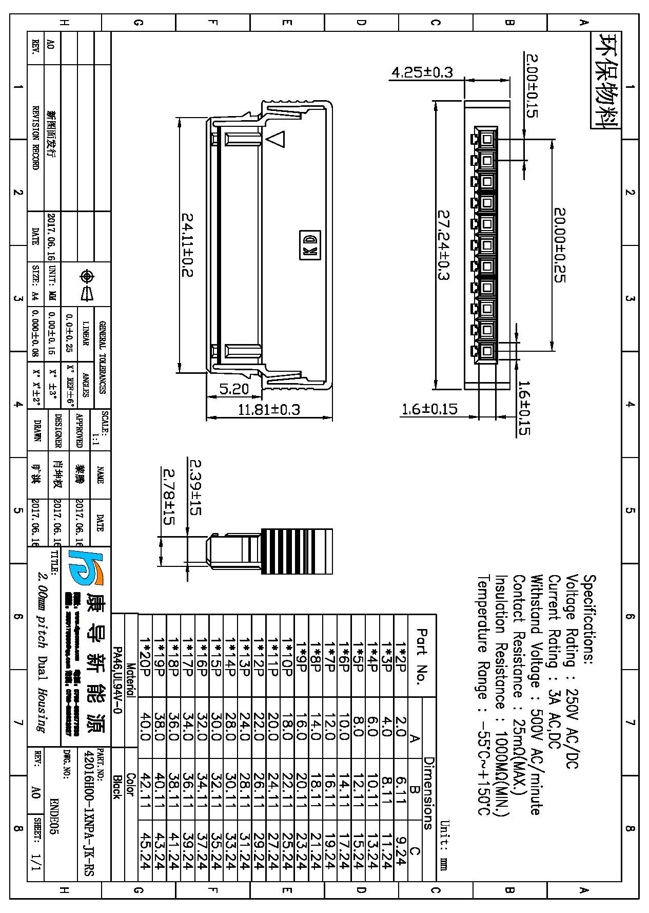 Spec:2.0mm PITCH HOUSING