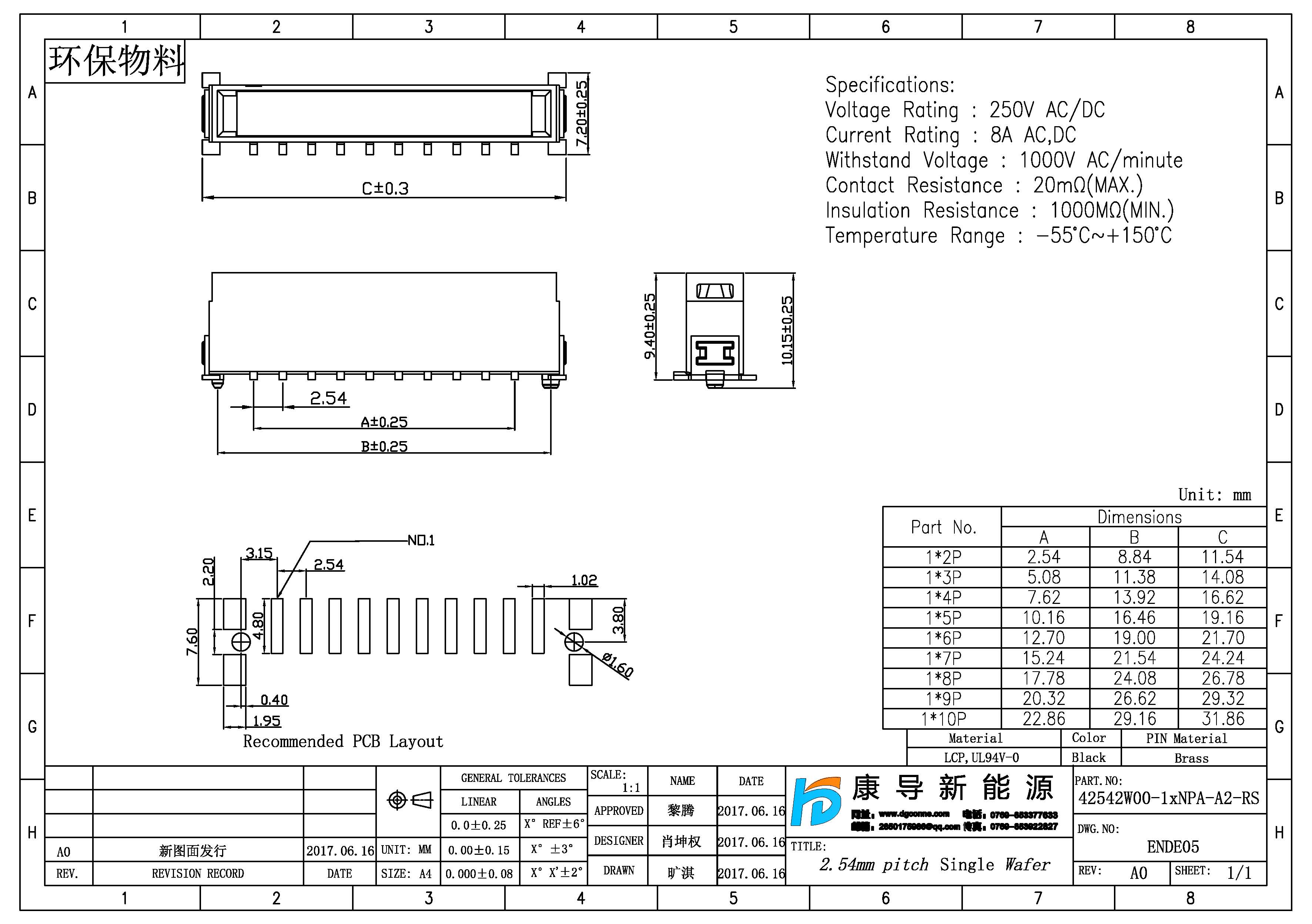 Spec:2.54mm PITCH SINGLE SMT Type WAFER
