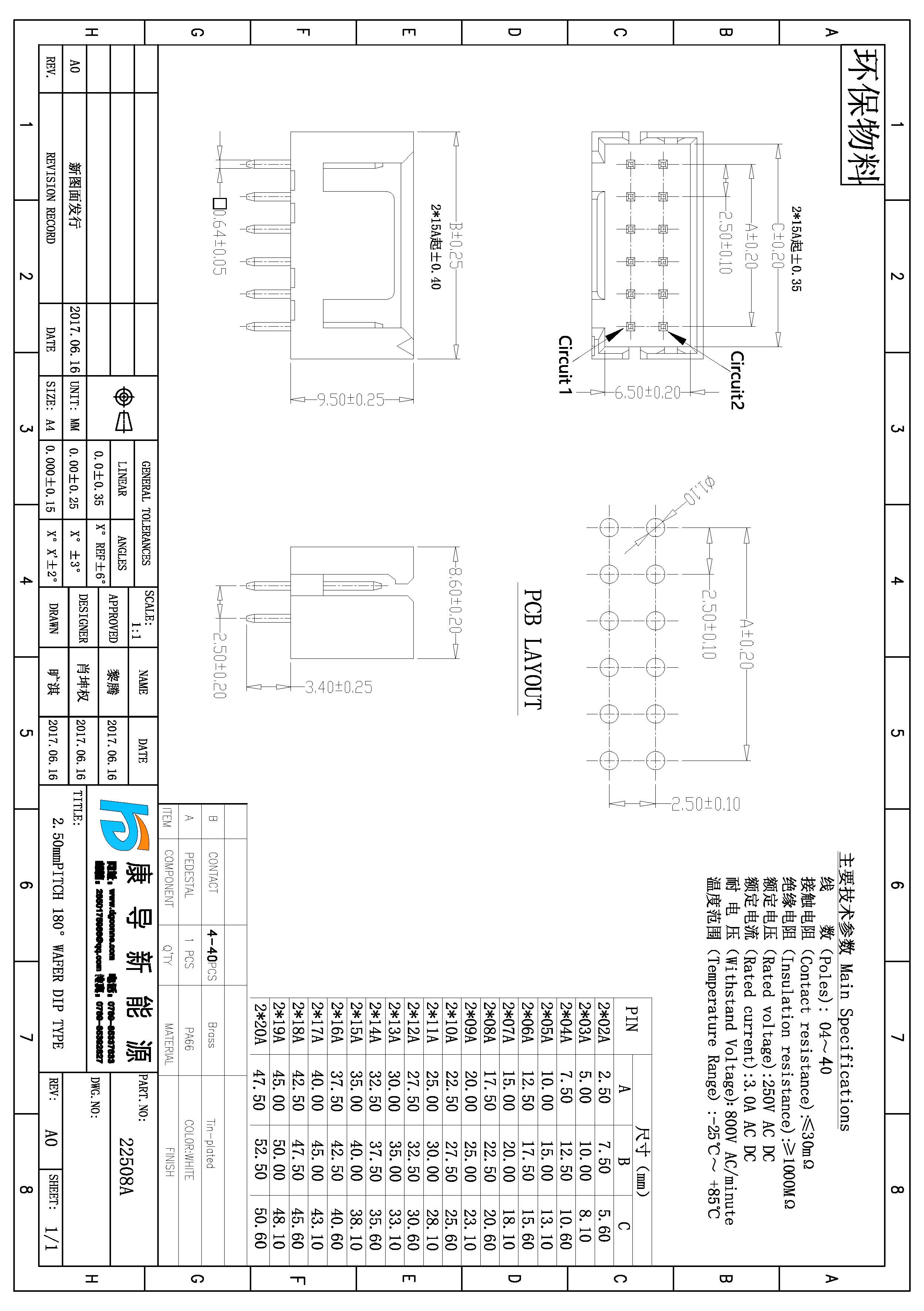Spec:2.50mm PITCH 180° WAFER DIP TYPE