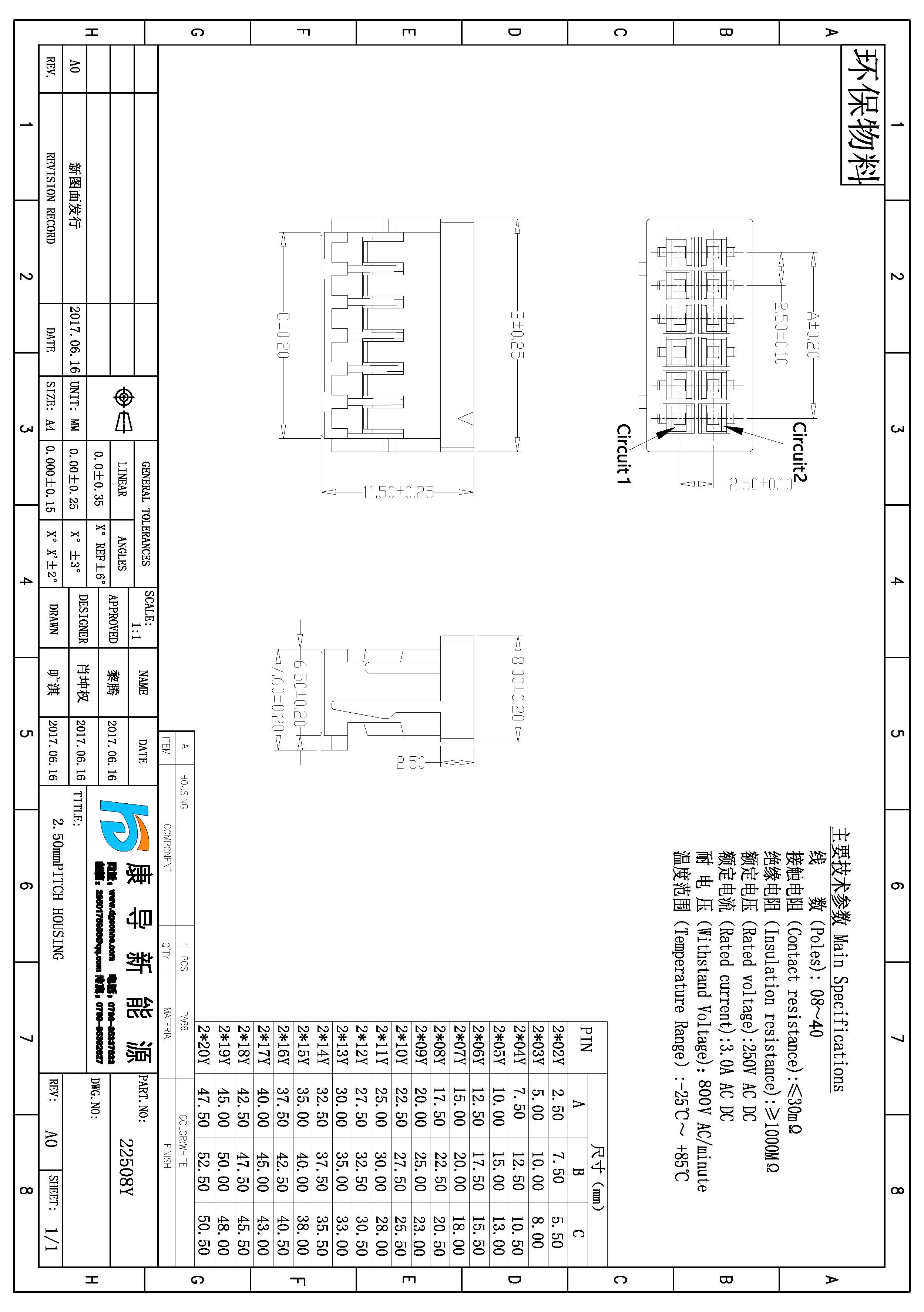 - 产品规格:2.50MM胶壳,线端公壳,双排