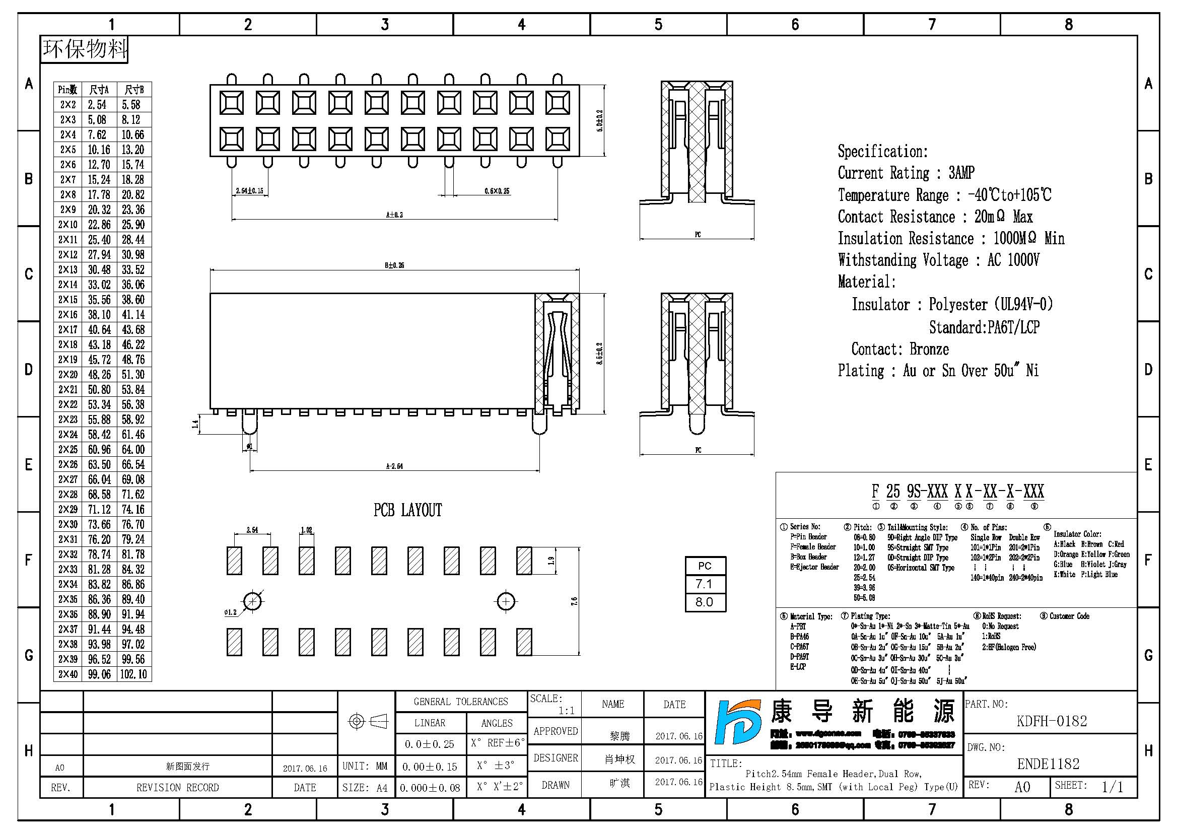 规格型号:FH:2.54MM H:8.5MM 2*NP SMT U端