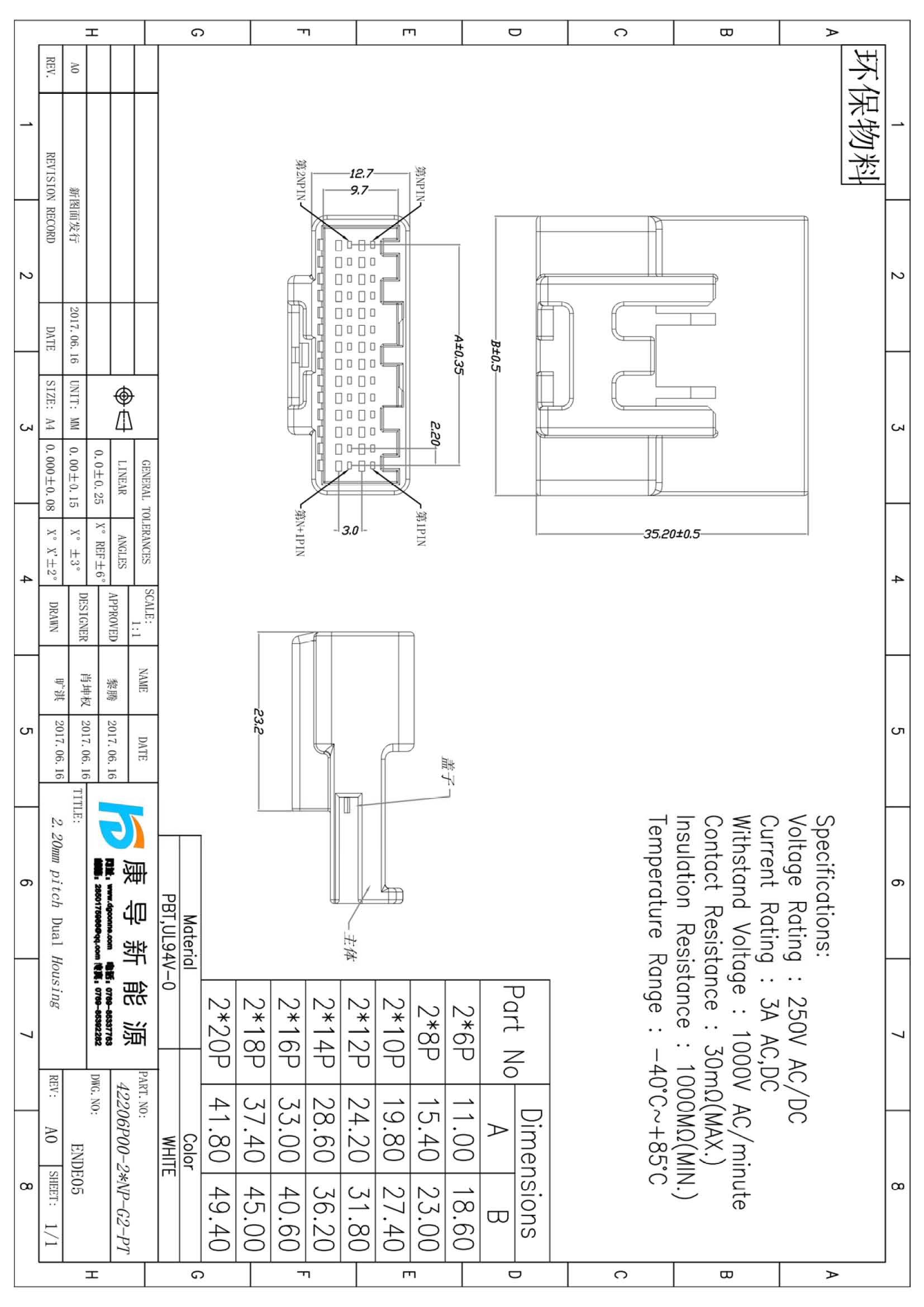 规格型号:PH:2.20MM H:34.80MM 2*NP 线端母壳