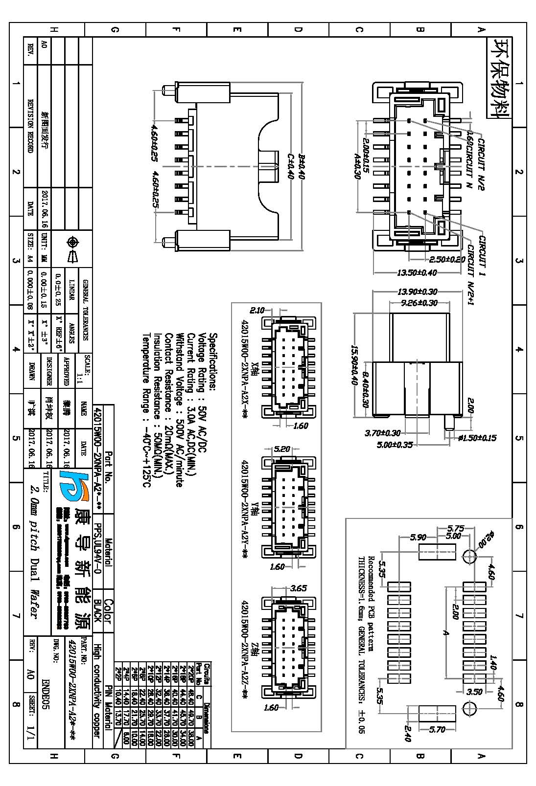 - 产品描述:针数:2*2P~2*20P 塑高:15.90MM