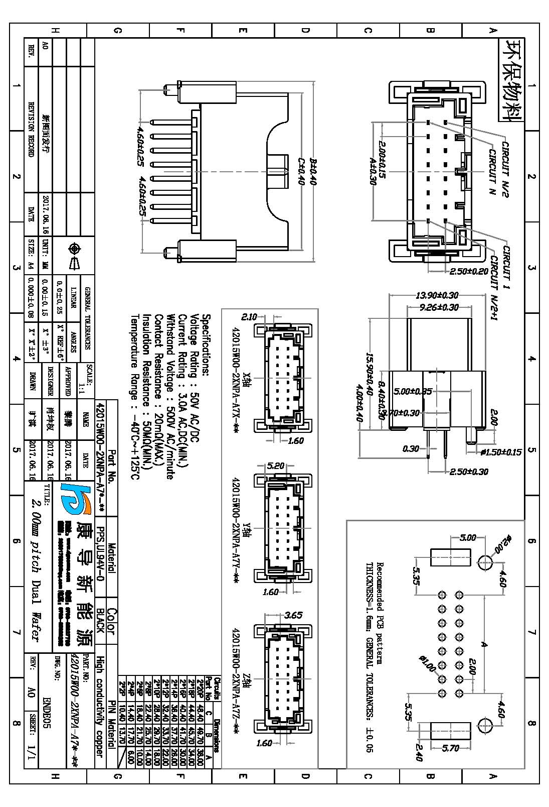 - 产品描述:针数:2*2P~2*20P 塑高:15.90MM