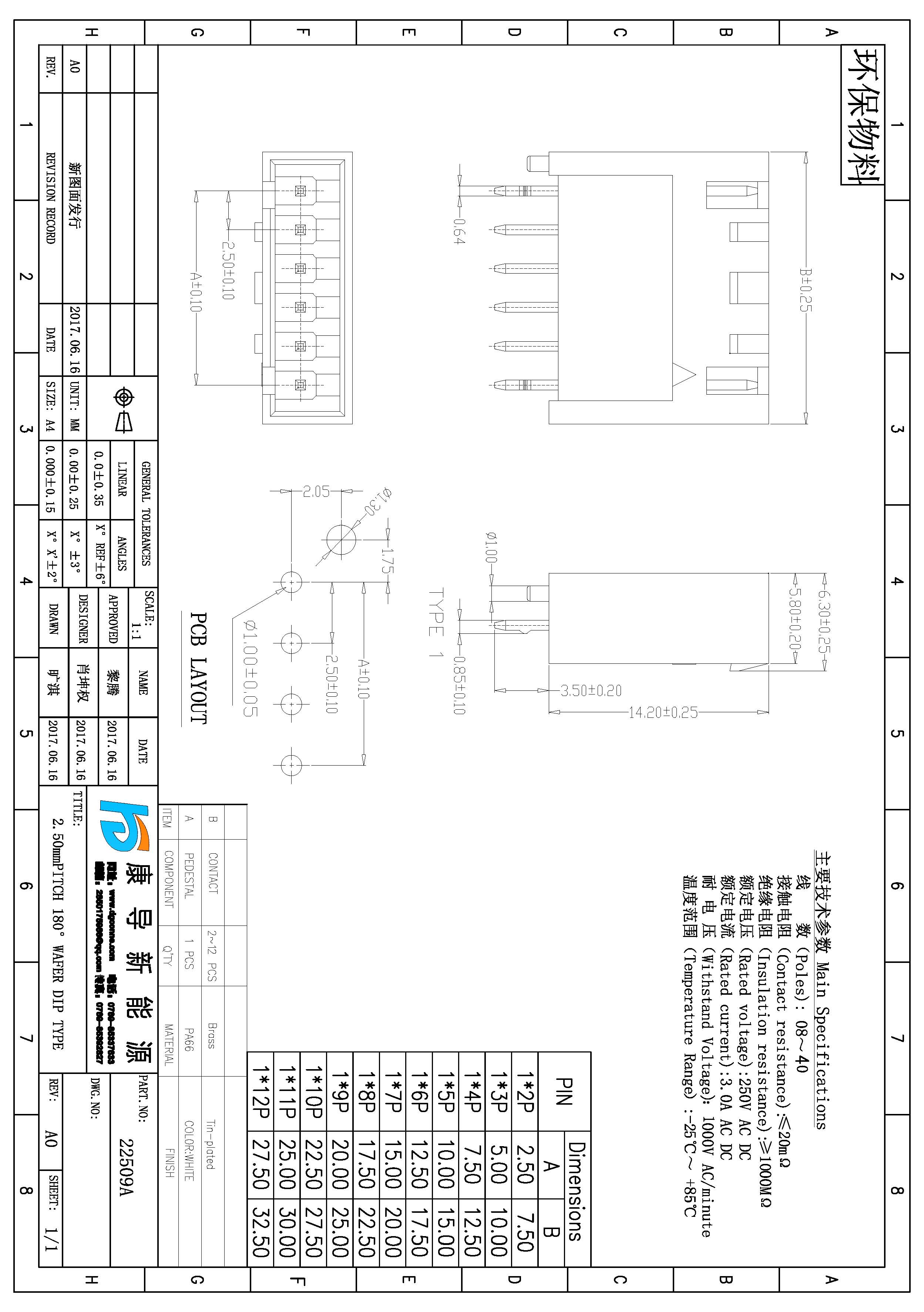 Spec:2.50mm PITCH 180° WAFER DIP TYPE