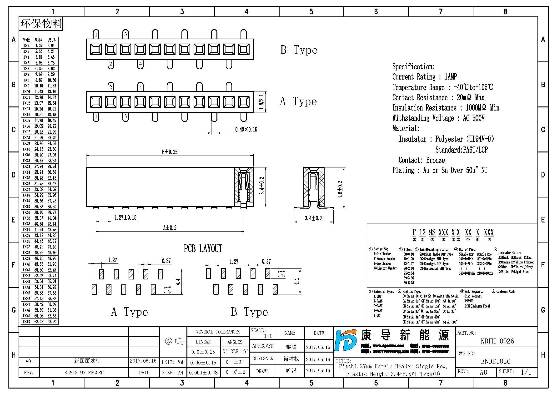 规格型号:FH:1.27MM H:3.4MM 1*NP SMT U端错位贴